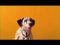 Description: New Pedigree commercial with a Dalmation on a yellow background who's confused about the vitamins in his food. |